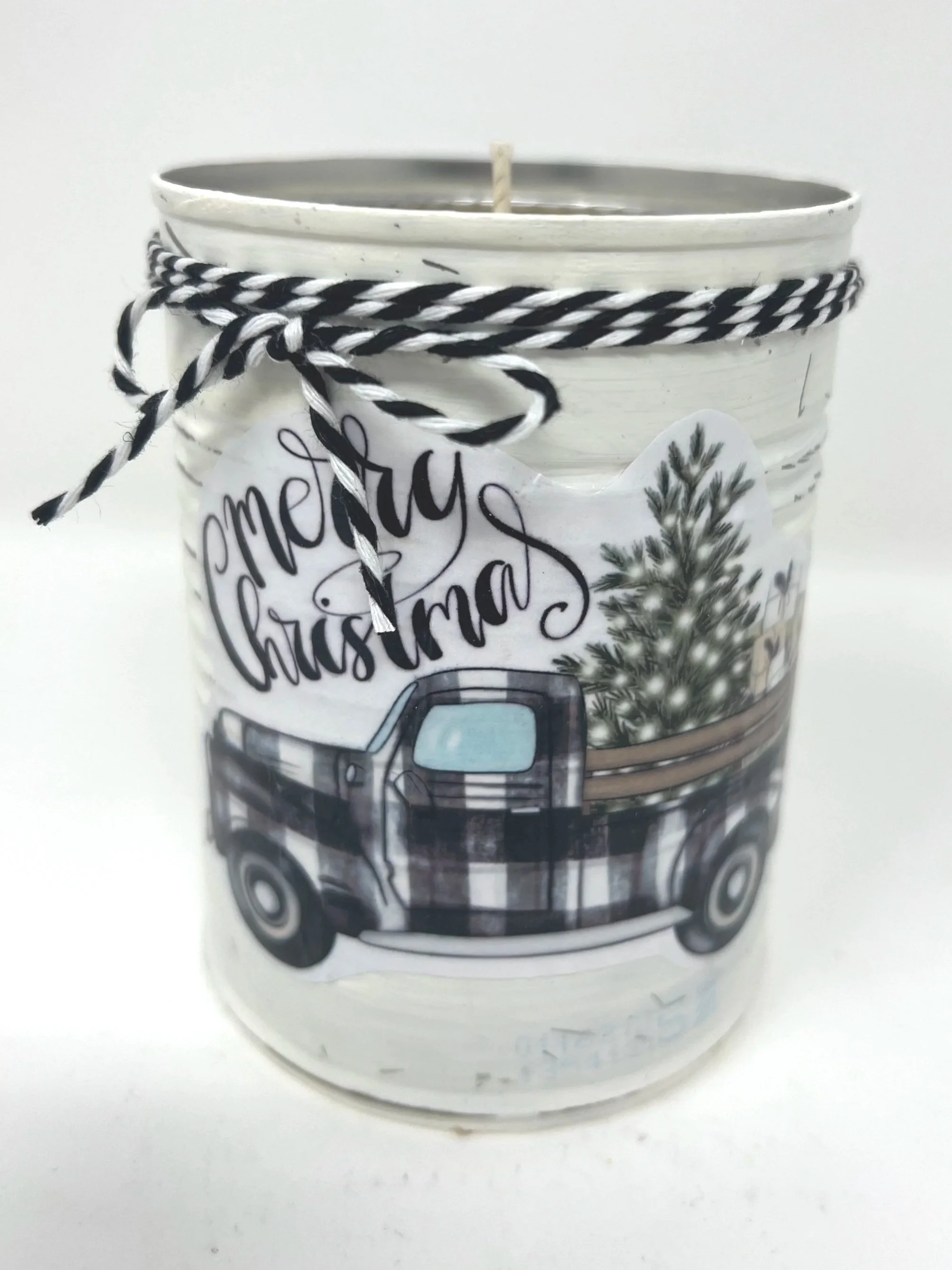 Containers are 100% recycled cans that vary slightly in size but will be between 12-14oz. All candles are hand poured in small batches.